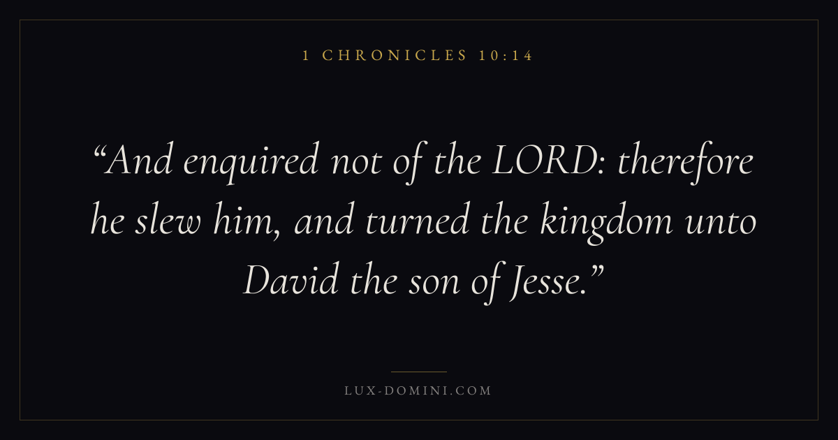 And enquired not of the LORD: therefore he slew him, and turned the kingdom unto David the son of Jesse.