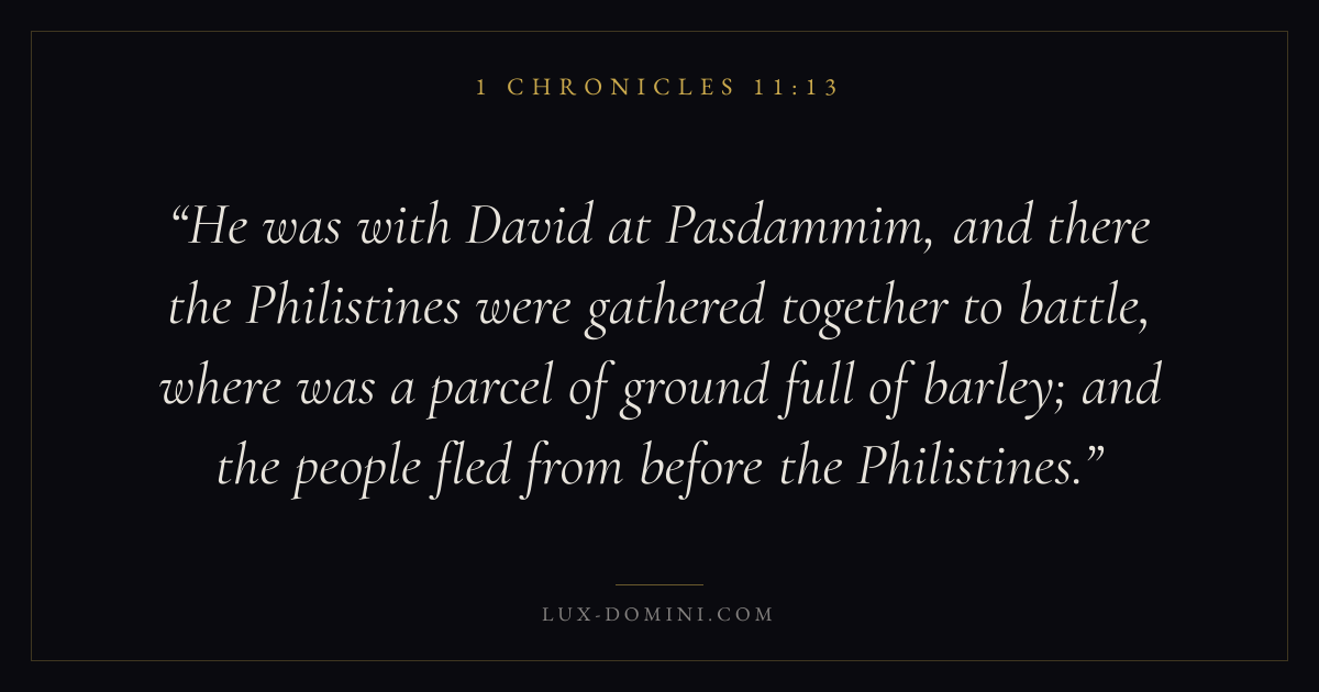 He was with David at Pasdammim, and there the Philistines were gathered together to battle, where was a parcel of ground full of barley; and the people fled from before the Philistines.