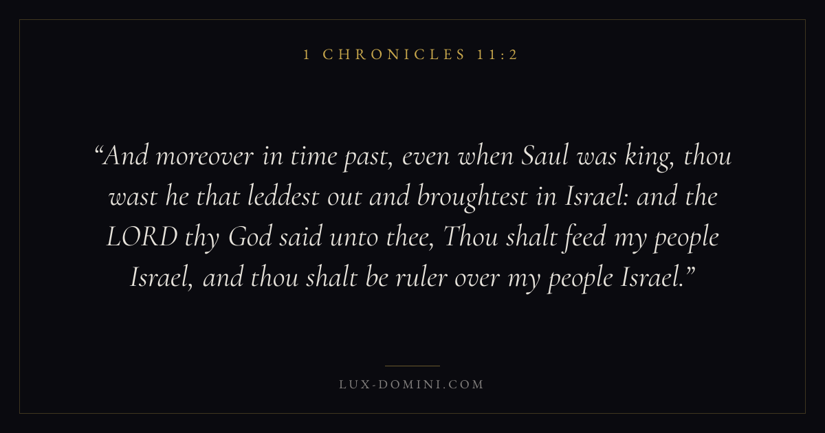And moreover in time past, even when Saul was king, thou wast he that leddest out and broughtest in Israel: and the LORD thy God said unto thee, Thou shalt feed my people Israel, and thou shalt be ruler over my people Israel.