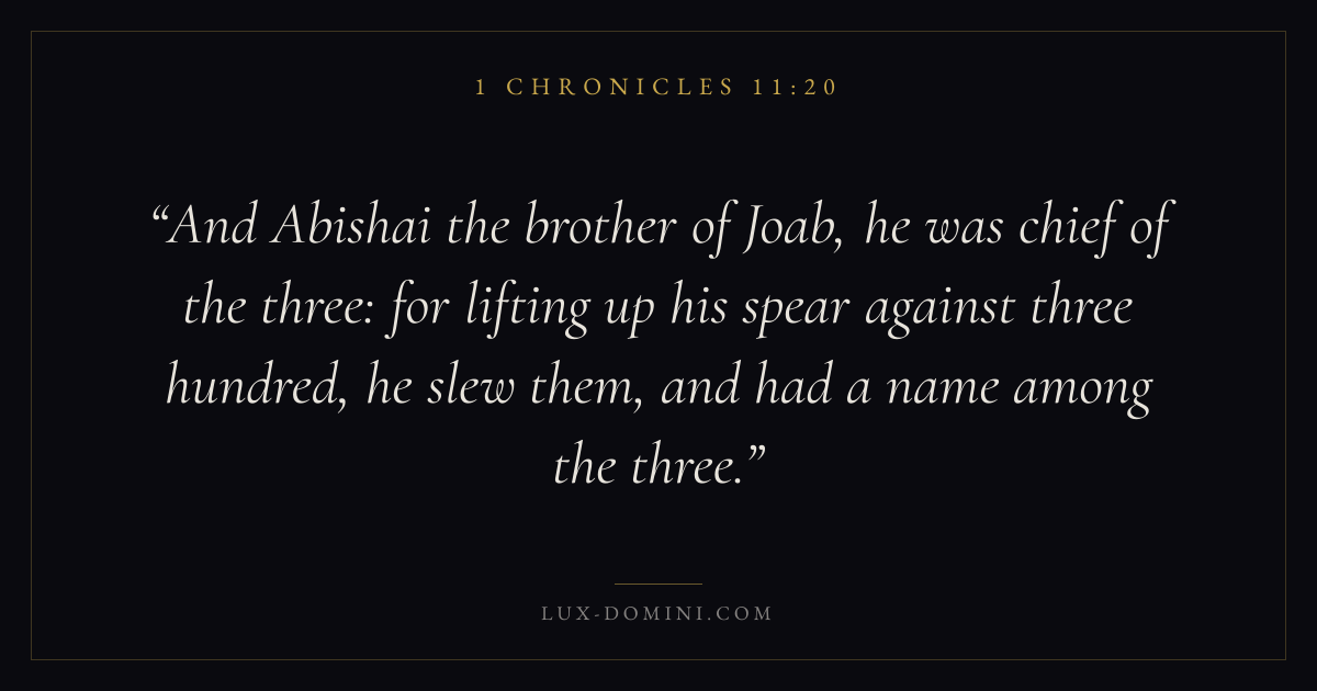 And Abishai the brother of Joab, he was chief of the three: for lifting up his spear against three hundred, he slew them, and had a name among the three.