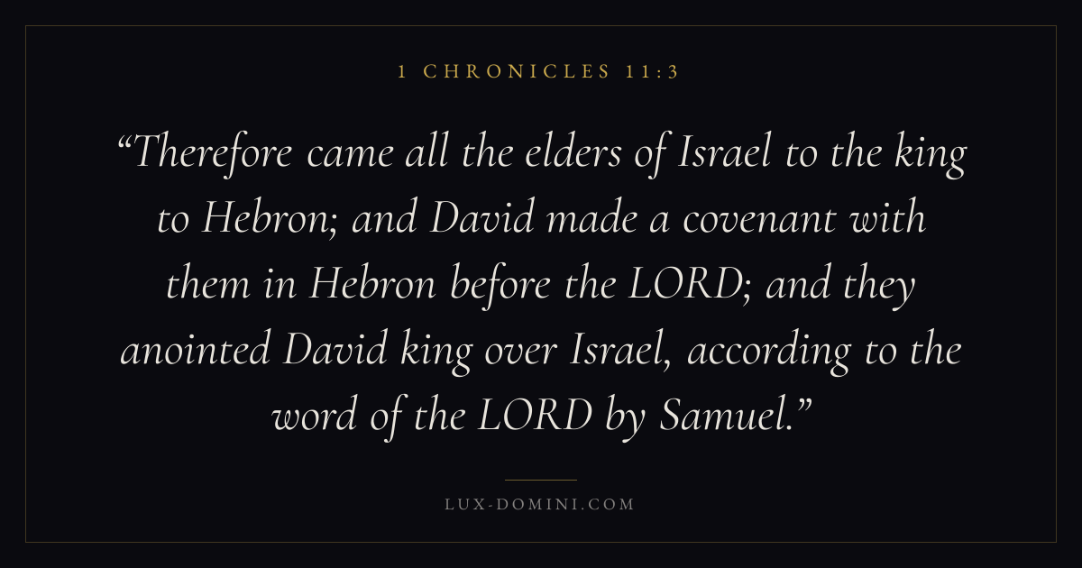 Therefore came all the elders of Israel to the king to Hebron; and David made a covenant with them in Hebron before the LORD; and they anointed David king over Israel, according to the word of the LORD by Samuel.