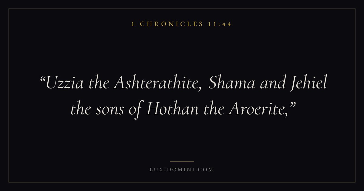 Uzzia the Ashterathite, Shama and Jehiel the sons of Hothan the Aroerite,