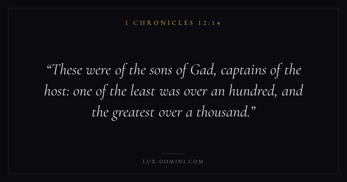 These were of the sons of Gad, captains of the host: one of the least was over an hundred, and the greatest over a thousand.