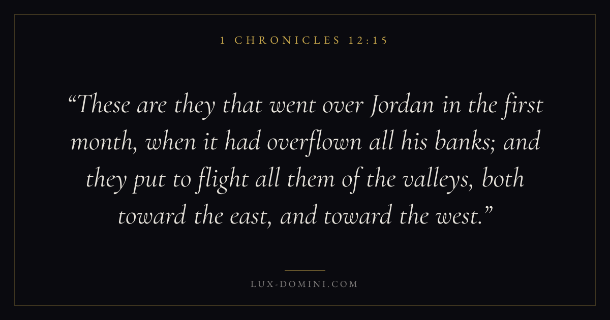These are they that went over Jordan in the first month, when it had overflown all his banks; and they put to flight all them of the valleys, both toward the east, and toward the west.