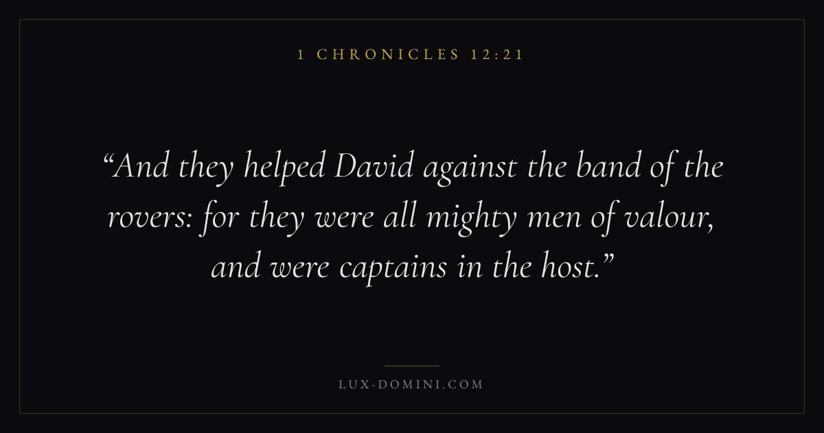 And they helped David against the band of the rovers: for they were all mighty men of valour, and were captains in the host.