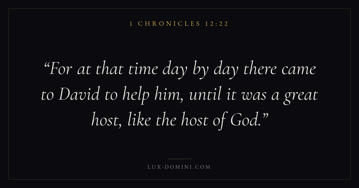 For at that time day by day there came to David to help him, until it was a great host, like the host of God.
