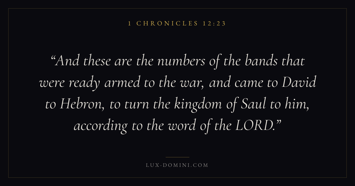 And these are the numbers of the bands that were ready armed to the war, and came to David to Hebron, to turn the kingdom of Saul to him, according to the word of the LORD.