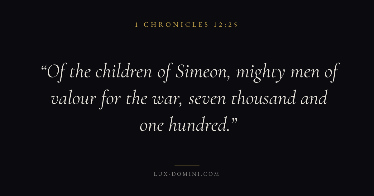 Of the children of Simeon, mighty men of valour for the war, seven thousand and one hundred.