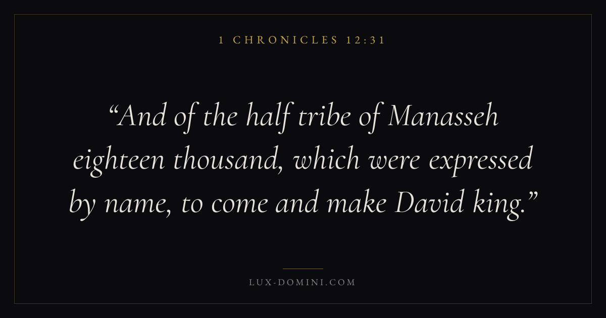 And of the half tribe of Manasseh eighteen thousand, which were expressed by name, to come and make David king.