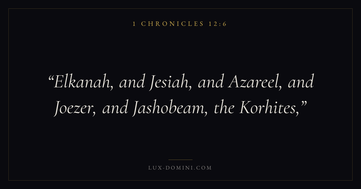 Elkanah, and Jesiah, and Azareel, and Joezer, and Jashobeam, the Korhites,
