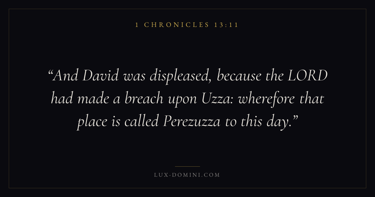 And David was displeased, because the LORD had made a breach upon Uzza: wherefore that place is called Perezuzza to this day.