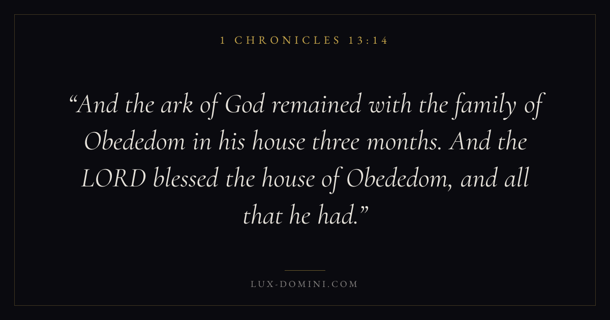 And the ark of God remained with the family of Obededom in his house three months. And the LORD blessed the house of Obededom, and all that he had.