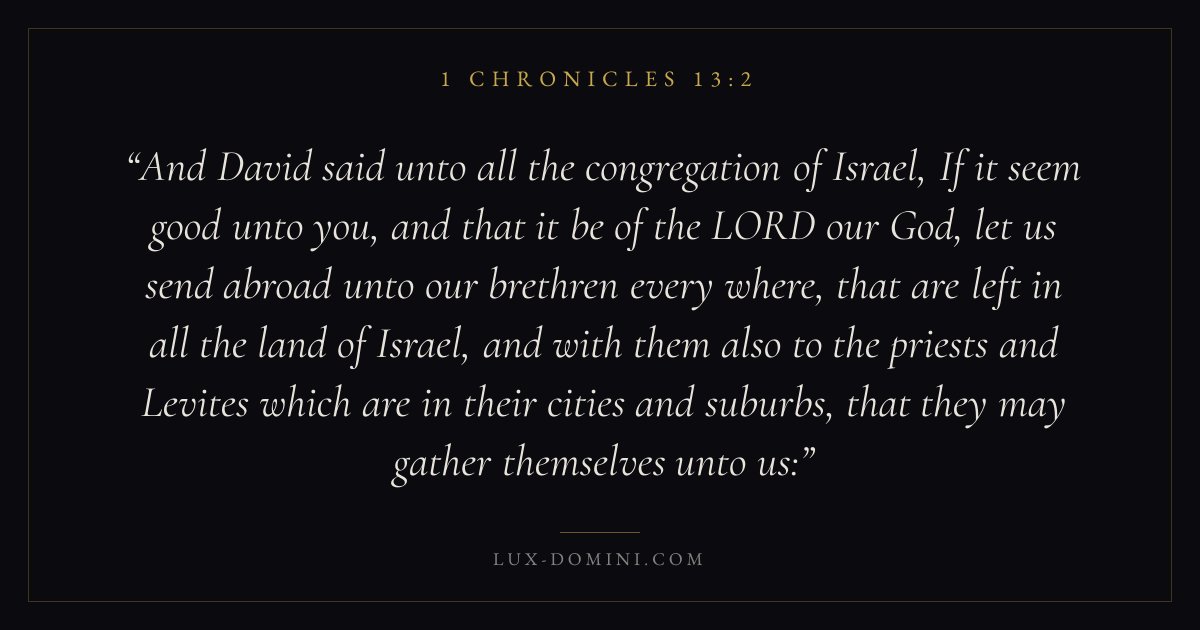 And David said unto all the congregation of Israel, If it seem good unto you, and that it be of the LORD our God, let us send abroad unto our brethren every where, that are left in all the land of Israel, and with them also to the priests and Levites which are in their cities and suburbs, that they may gather themselves unto us: