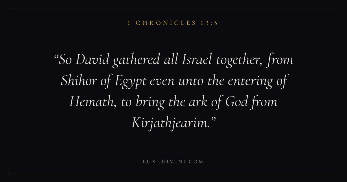 So David gathered all Israel together, from Shihor of Egypt even unto the entering of Hemath, to bring the ark of God from Kirjathjearim.