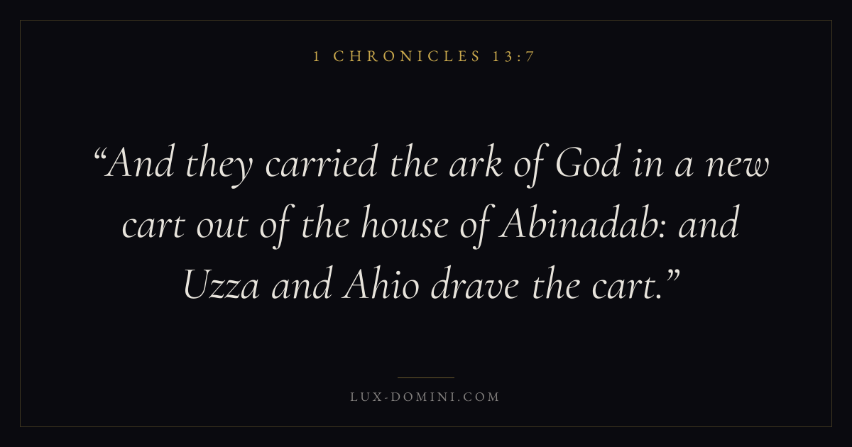 And they carried the ark of God in a new cart out of the house of Abinadab: and Uzza and Ahio drave the cart.