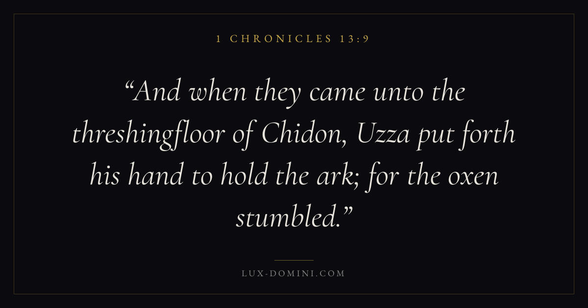 And when they came unto the threshingfloor of Chidon, Uzza put forth his hand to hold the ark; for the oxen stumbled.