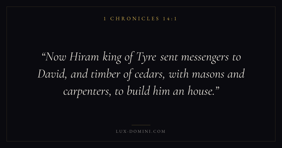 Now Hiram king of Tyre sent messengers to David, and timber of cedars, with masons and carpenters, to build him an house.