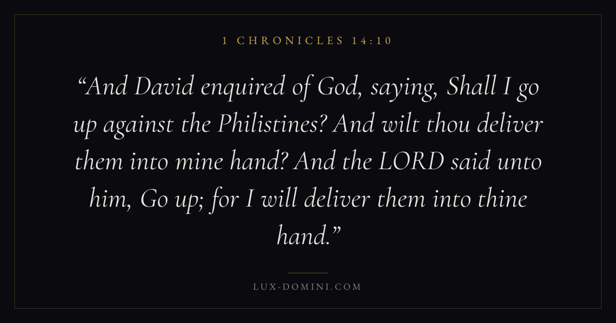 And David enquired of God, saying, Shall I go up against the Philistines? And wilt thou deliver them into mine hand? And the LORD said unto him, Go up; for I will deliver them into thine hand.