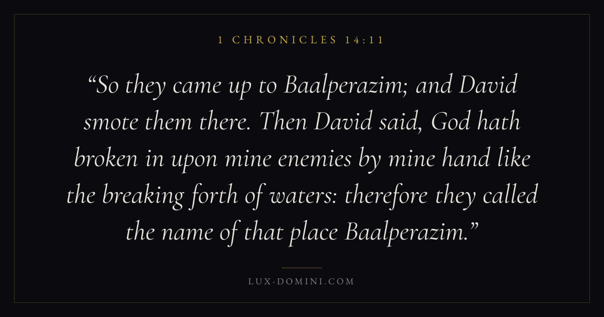 So they came up to Baalperazim; and David smote them there. Then David said, God hath broken in upon mine enemies by mine hand like the breaking forth of waters: therefore they called the name of that place Baalperazim.