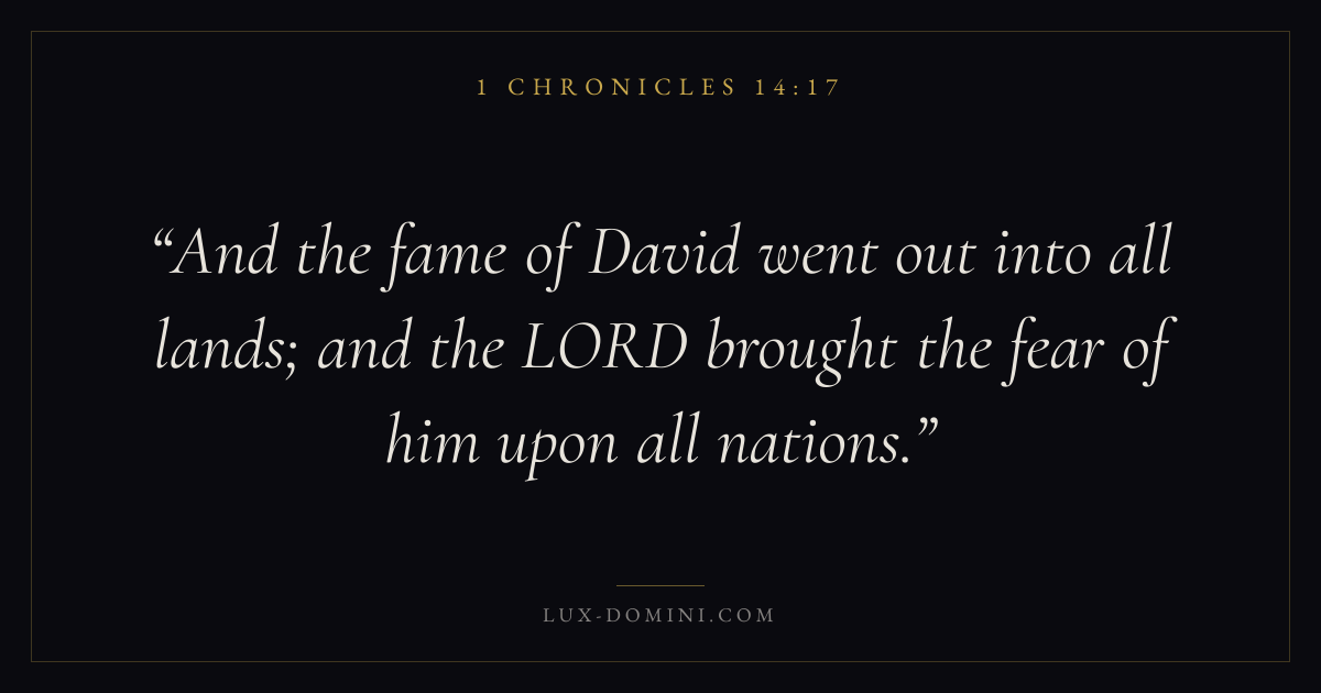 And the fame of David went out into all lands; and the LORD brought the fear of him upon all nations.