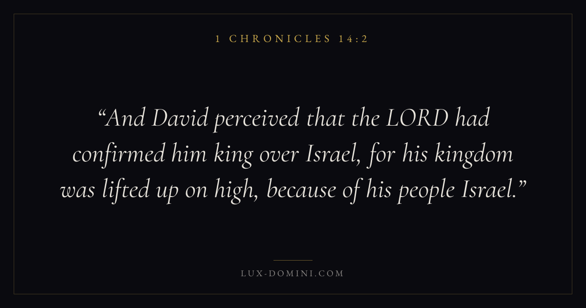 And David perceived that the LORD had confirmed him king over Israel, for his kingdom was lifted up on high, because of his people Israel.