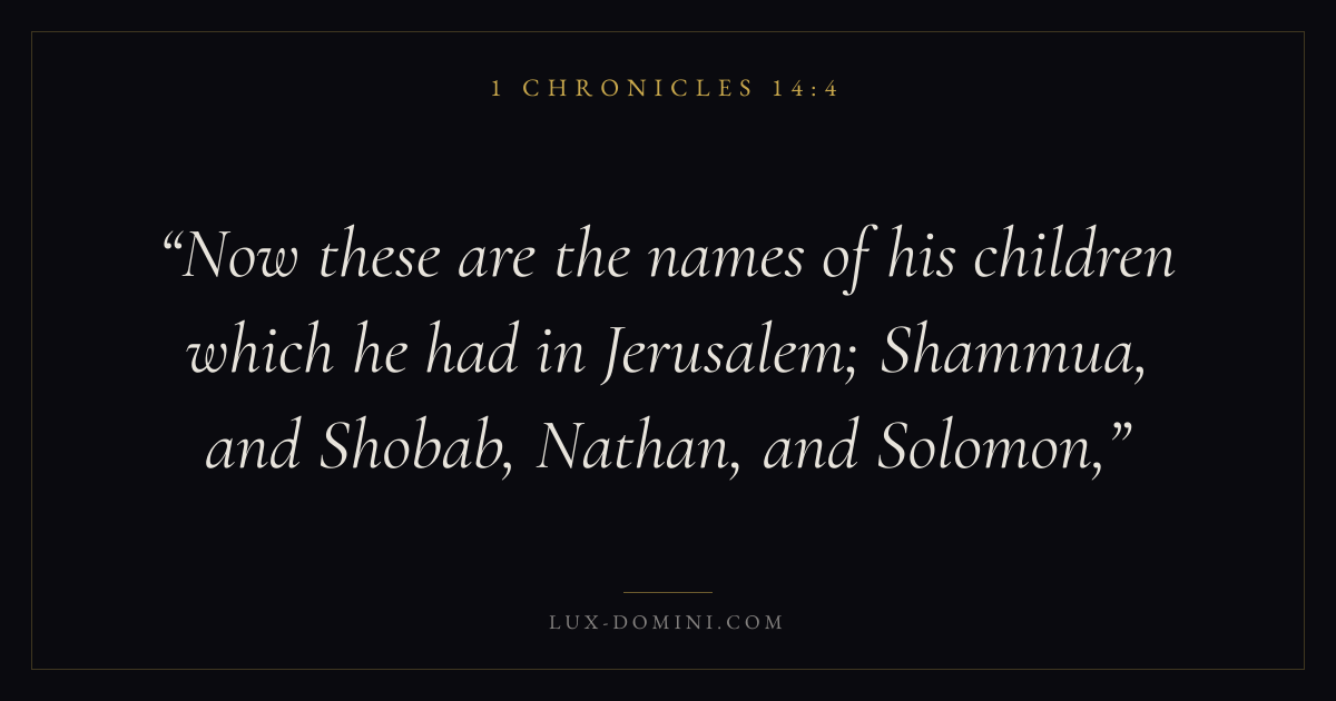 Now these are the names of his children which he had in Jerusalem; Shammua, and Shobab, Nathan, and Solomon,