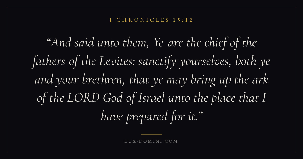 And said unto them, Ye are the chief of the fathers of the Levites: sanctify yourselves, both ye and your brethren, that ye may bring up the ark of the LORD God of Israel unto the place that I have prepared for it.