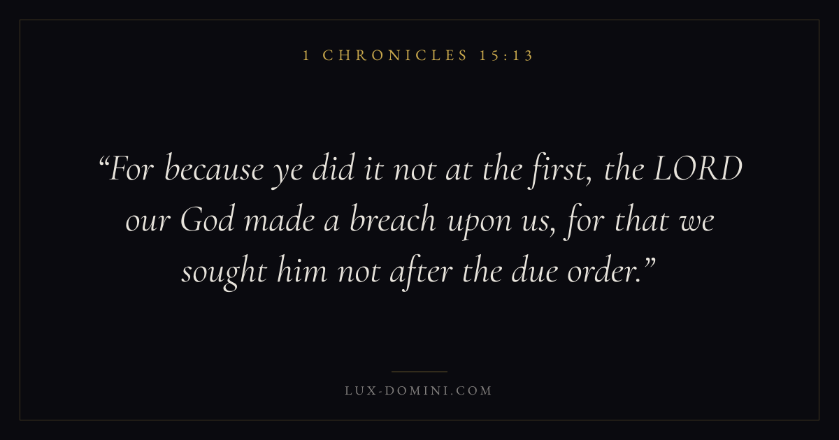 For because ye did it not at the first, the LORD our God made a breach upon us, for that we sought him not after the due order.