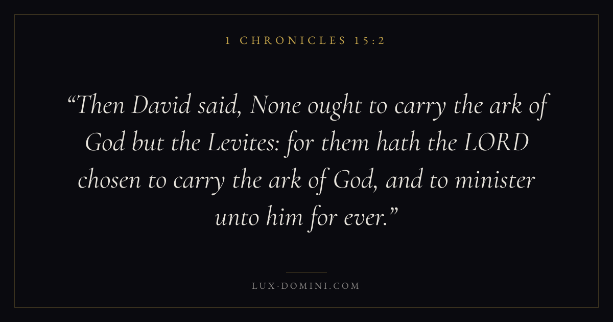 Then David said, None ought to carry the ark of God but the Levites: for them hath the LORD chosen to carry the ark of God, and to minister unto him for ever.