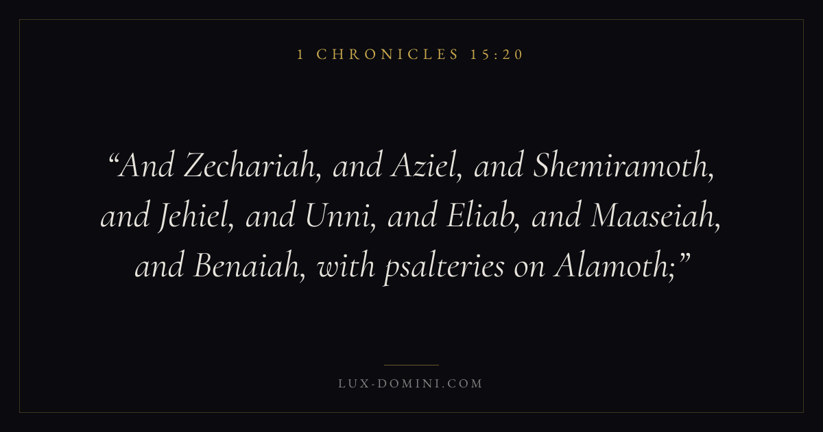 And Zechariah, and Aziel, and Shemiramoth, and Jehiel, and Unni, and Eliab, and Maaseiah, and Benaiah, with psalteries on Alamoth;