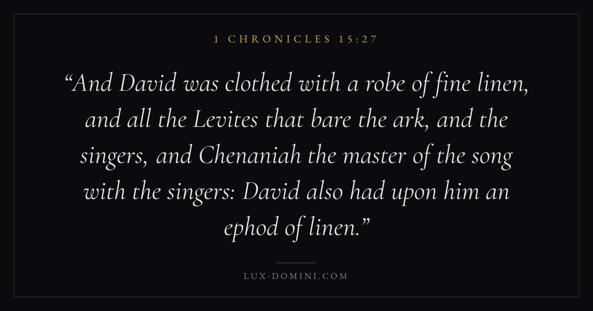 And David was clothed with a robe of fine linen, and all the Levites that bare the ark, and the singers, and Chenaniah the master of the song with the singers: David also had upon him an ephod of linen.