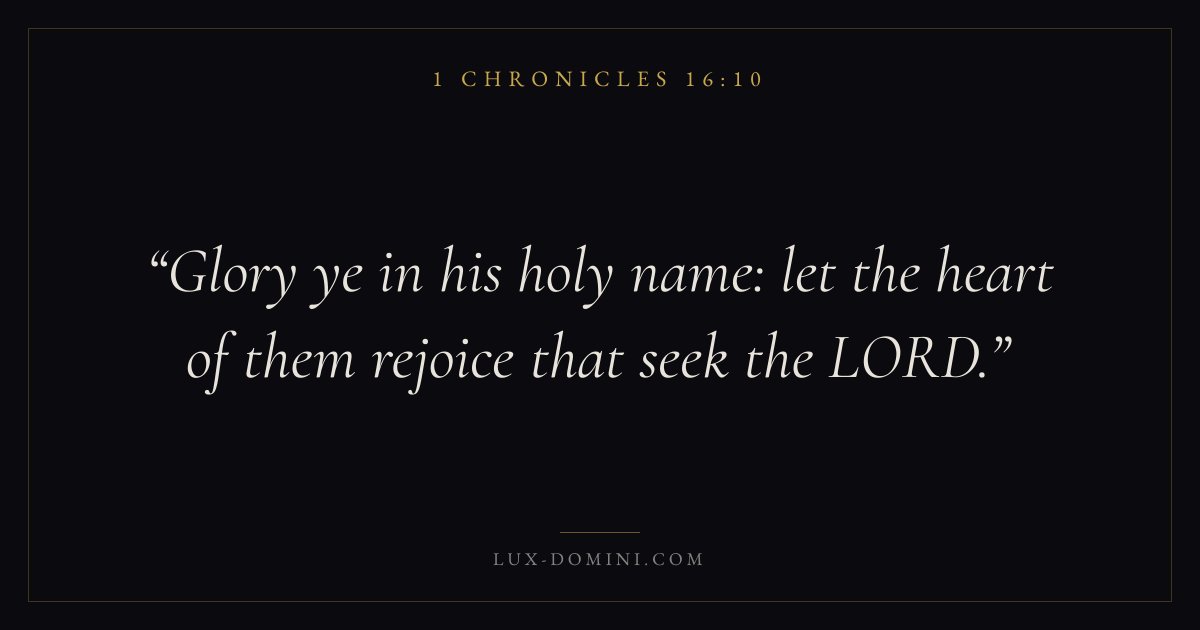 Glory ye in his holy name: let the heart of them rejoice that seek the LORD.