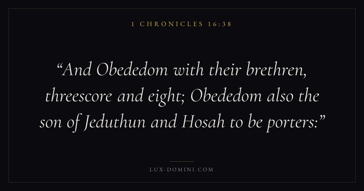 And Obededom with their brethren, threescore and eight; Obededom also the son of Jeduthun and Hosah to be porters: