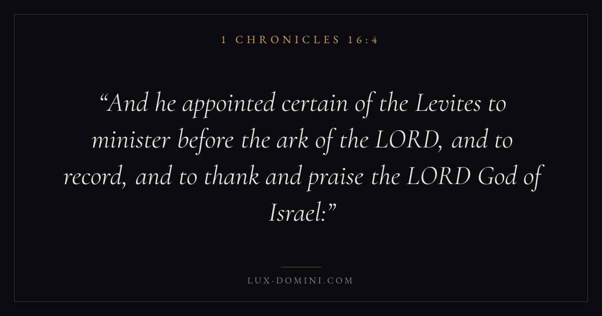 And he appointed certain of the Levites to minister before the ark of the LORD, and to record, and to thank and praise the LORD God of Israel: