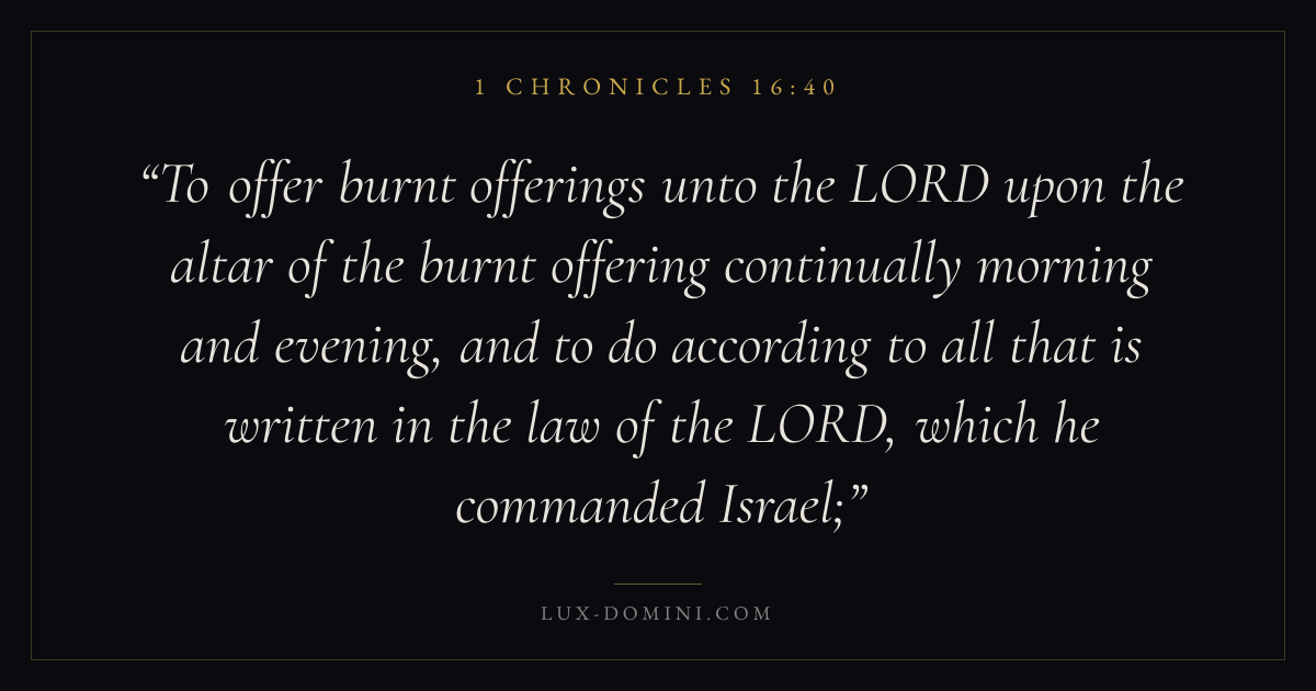 To offer burnt offerings unto the LORD upon the altar of the burnt offering continually morning and evening, and to do according to all that is written in the law of the LORD, which he commanded Israel;