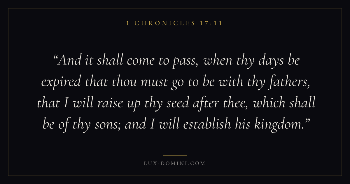 And it shall come to pass, when thy days be expired that thou must go to be with thy fathers, that I will raise up thy seed after thee, which shall be of thy sons; and I will establish his kingdom.