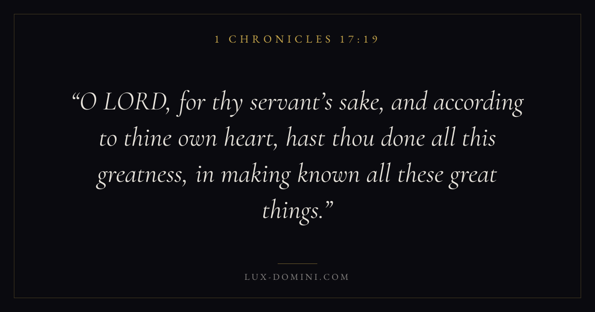 O LORD, for thy servant’s sake, and according to thine own heart, hast thou done all this greatness, in making known all these great things.