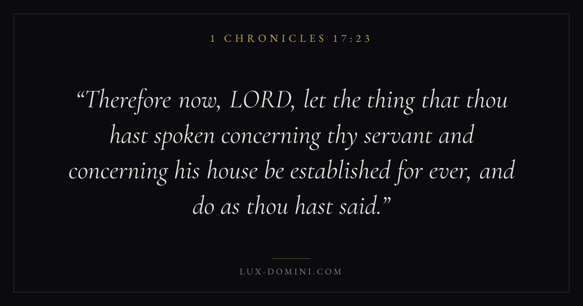 Therefore now, LORD, let the thing that thou hast spoken concerning thy servant and concerning his house be established for ever, and do as thou hast said.