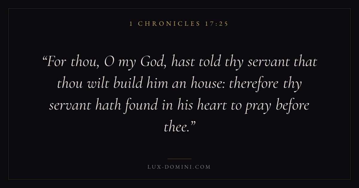 For thou, O my God, hast told thy servant that thou wilt build him an house: therefore thy servant hath found in his heart to pray before thee.