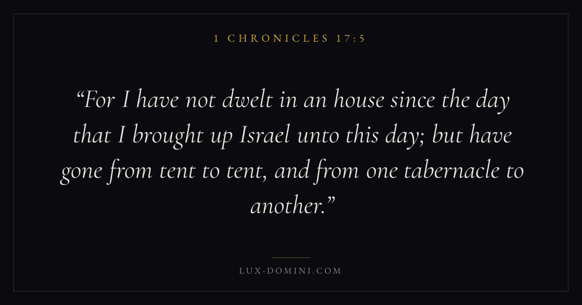 For I have not dwelt in an house since the day that I brought up Israel unto this day; but have gone from tent to tent, and from one tabernacle to another.