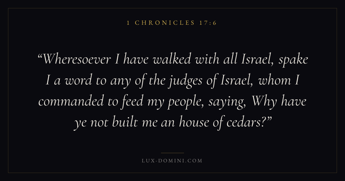Wheresoever I have walked with all Israel, spake I a word to any of the judges of Israel, whom I commanded to feed my people, saying, Why have ye not built me an house of cedars?