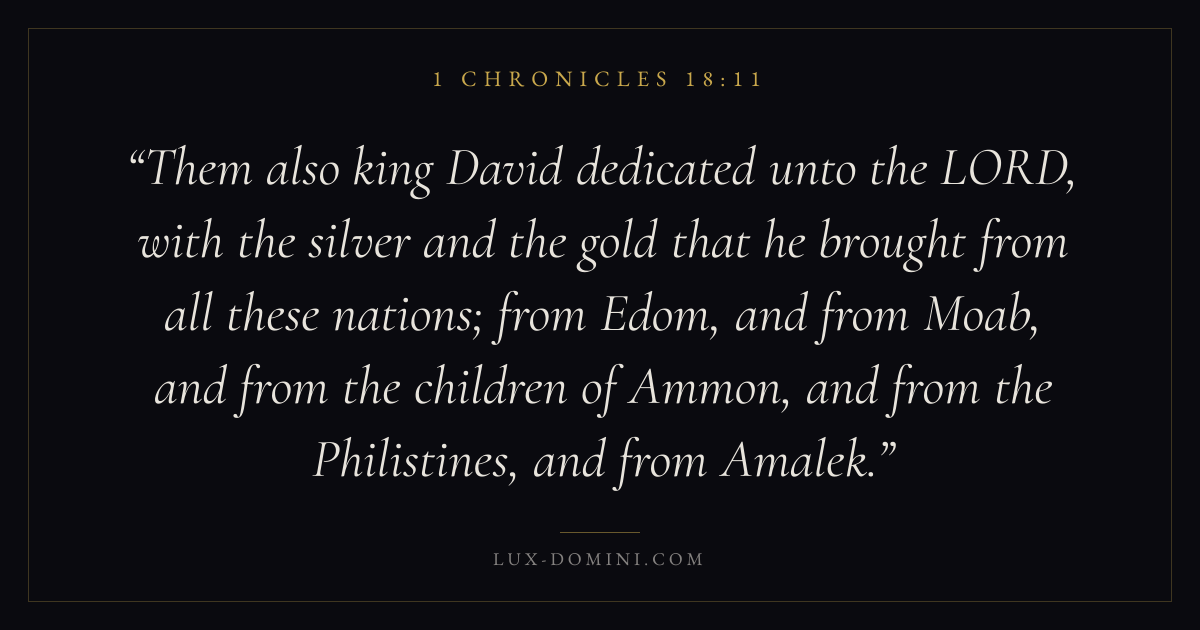 Them also king David dedicated unto the LORD, with the silver and the gold that he brought from all these nations; from Edom, and from Moab, and from the children of Ammon, and from the Philistines, and from Amalek.