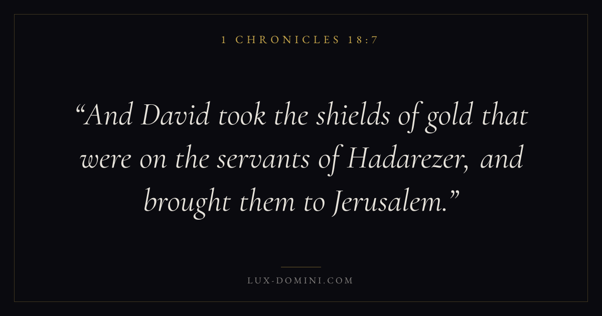 And David took the shields of gold that were on the servants of Hadarezer, and brought them to Jerusalem.