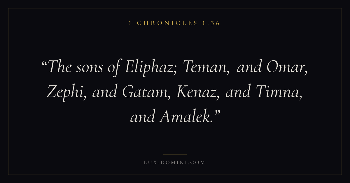 The sons of Eliphaz; Teman, and Omar, Zephi, and Gatam, Kenaz, and Timna, and Amalek.