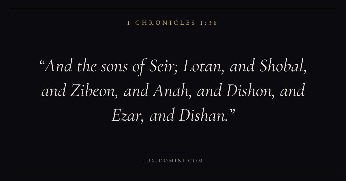 And the sons of Seir; Lotan, and Shobal, and Zibeon, and Anah, and Dishon, and Ezar, and Dishan.