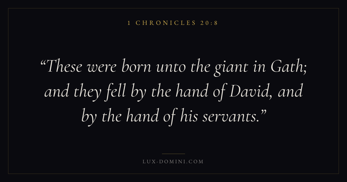 These were born unto the giant in Gath; and they fell by the hand of David, and by the hand of his servants.