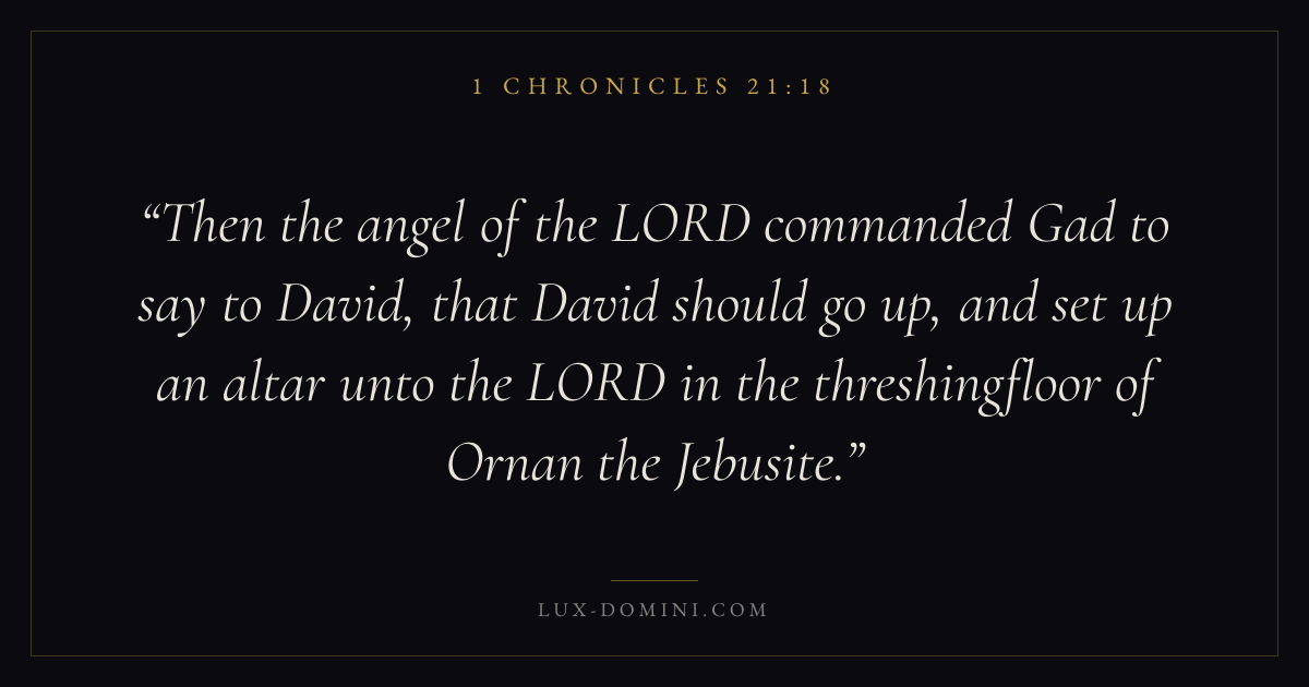 Then the angel of the LORD commanded Gad to say to David, that David should go up, and set up an altar unto the LORD in the threshingfloor of Ornan the Jebusite.