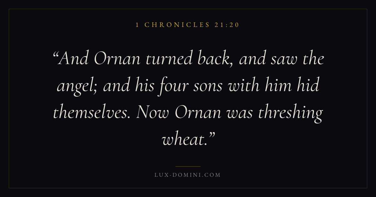 And Ornan turned back, and saw the angel; and his four sons with him hid themselves. Now Ornan was threshing wheat.