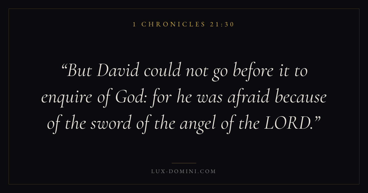 But David could not go before it to enquire of God: for he was afraid because of the sword of the angel of the LORD.