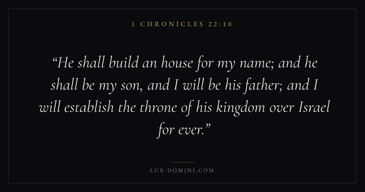 He shall build an house for my name; and he shall be my son, and I will be his father; and I will establish the throne of his kingdom over Israel for ever.